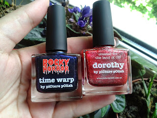 Renitől kép Picture Polish lakkot kaptam, amik egyébként vágyaim netovábbjai voltak és totálisan ledöbbentem, mikor megláttam őket. A Time Warp-ra már régóta ácsingózok, de mikor a szülinapi Nailland-es rendelésemnél be akartam tenni a kosaramba sajnos nem volt. Na most Renitől megkaptam :) A másik pedig a Dorothy, ami egy igazi tömény pirosas-ezüstös csillám csoda. Világ életemben kerestem a tökéletes piros csillámos lakkot, ami dorothy cipőjét juttatja eszembe, és ez véééégre tökéletes lesz ^^ Van egy piros csillámos Golden Rose-om is a Jolly Jewels kiadásból, de az inkább fedő, 3 réteg kellett belőle a teljes fedésért, és hát ne tudjátok meg milyen nehéz volt lemosni :D ilyen problémáim sem lesznek többé :P
